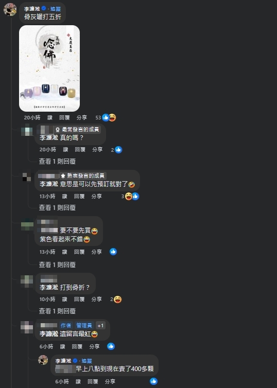 殯葬業者李濂淞推出骨灰罈5折優惠。(圖/翻攝自台東大小事(113年)臉書)