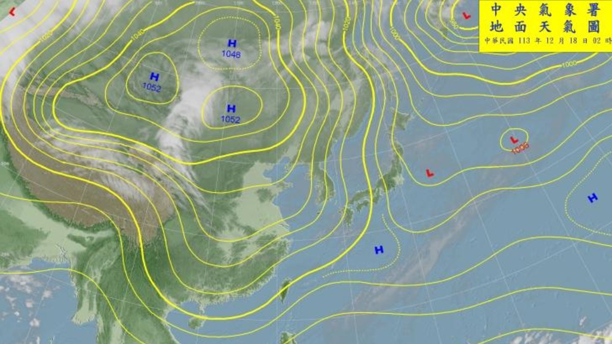 今(18日)受到大陸冷氣團影響,各地天氣較冷。(圖/氣象署)