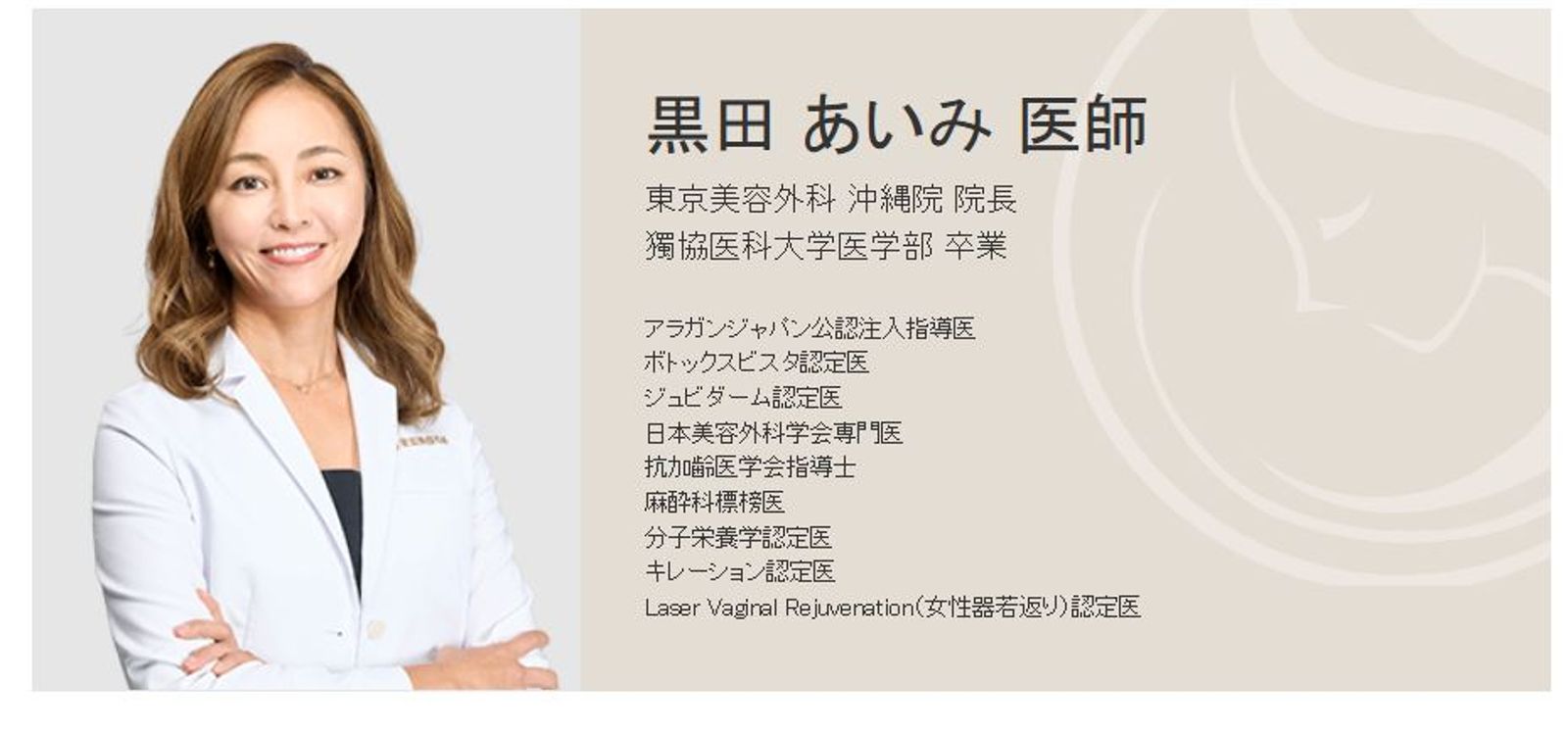 黑田愛美今年4月才剛升任「院長」一職。(翻攝東京美容外科官網)