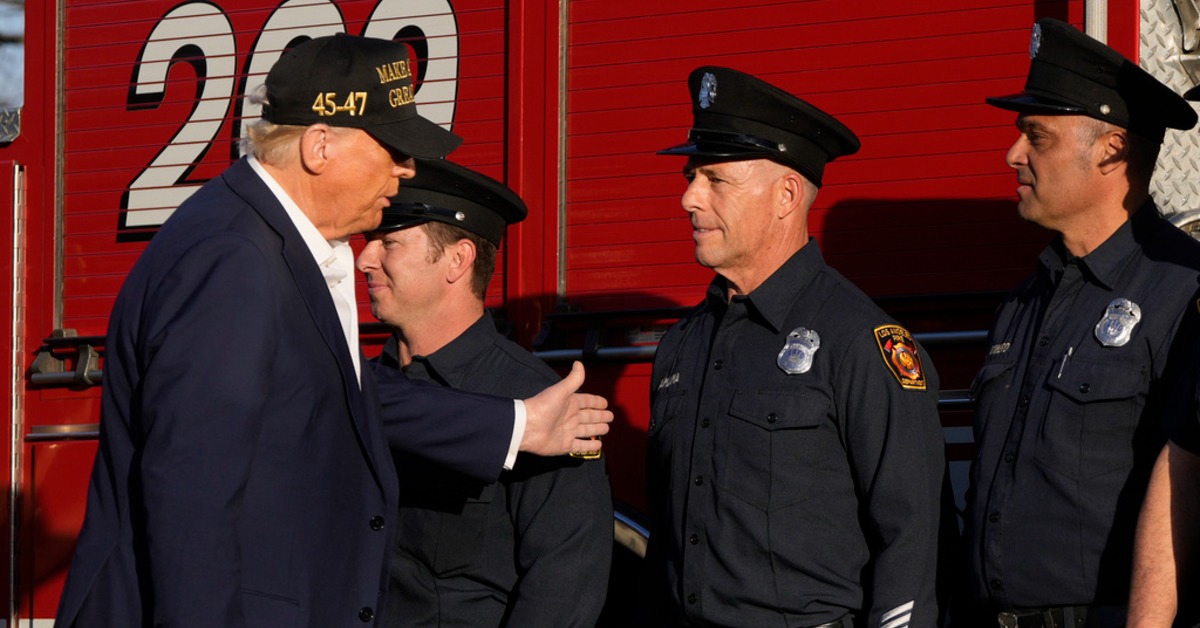川普搭上直升機,看看受損範圍到底有多大,這是川普夫婦重回白宮後,首度的參訪行程,加州州長紐森也親自前往接機。兩人握手,幾乎快要臉貼臉擁抱,紐森還豎起大拇指,讓人難以聯想,先前川普才剛大罵紐森是紐渣,是無能州長。