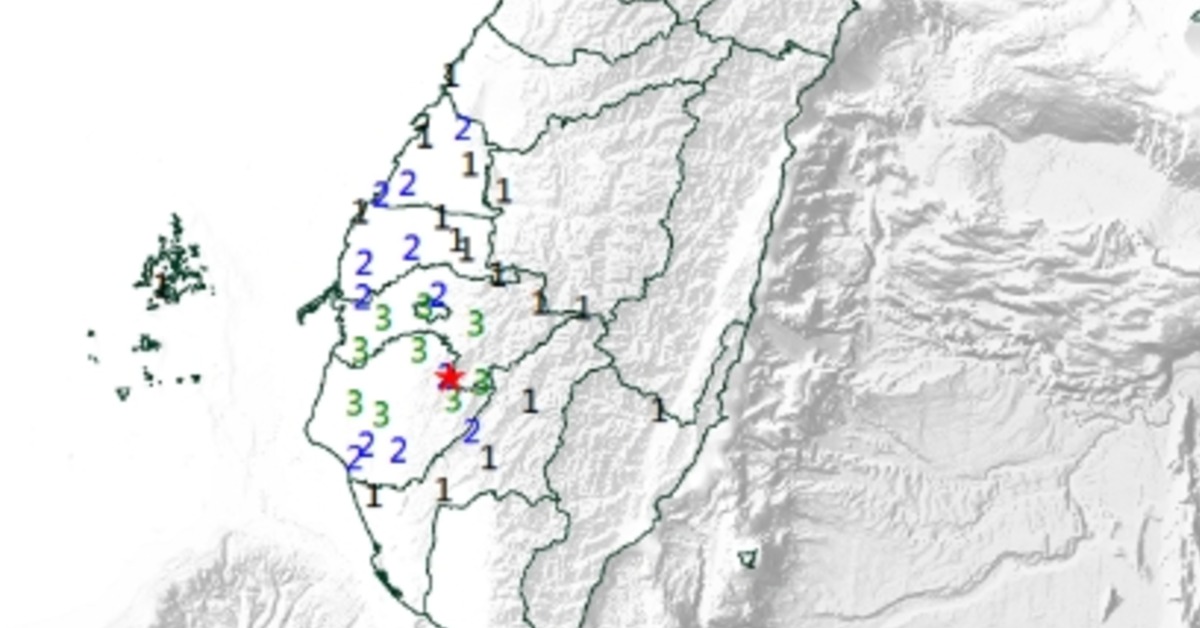 南部搖不停!台南市東山區(25日)晚間21時00分再發生芮氏規模4.5地震,震源深度9公里。各地最大震度為台南市3級、嘉義縣市3級、高雄市2級、雲林縣2級、彰化縣2級、南投縣1級、台東縣1級、澎湖縣1級、台中市1級。