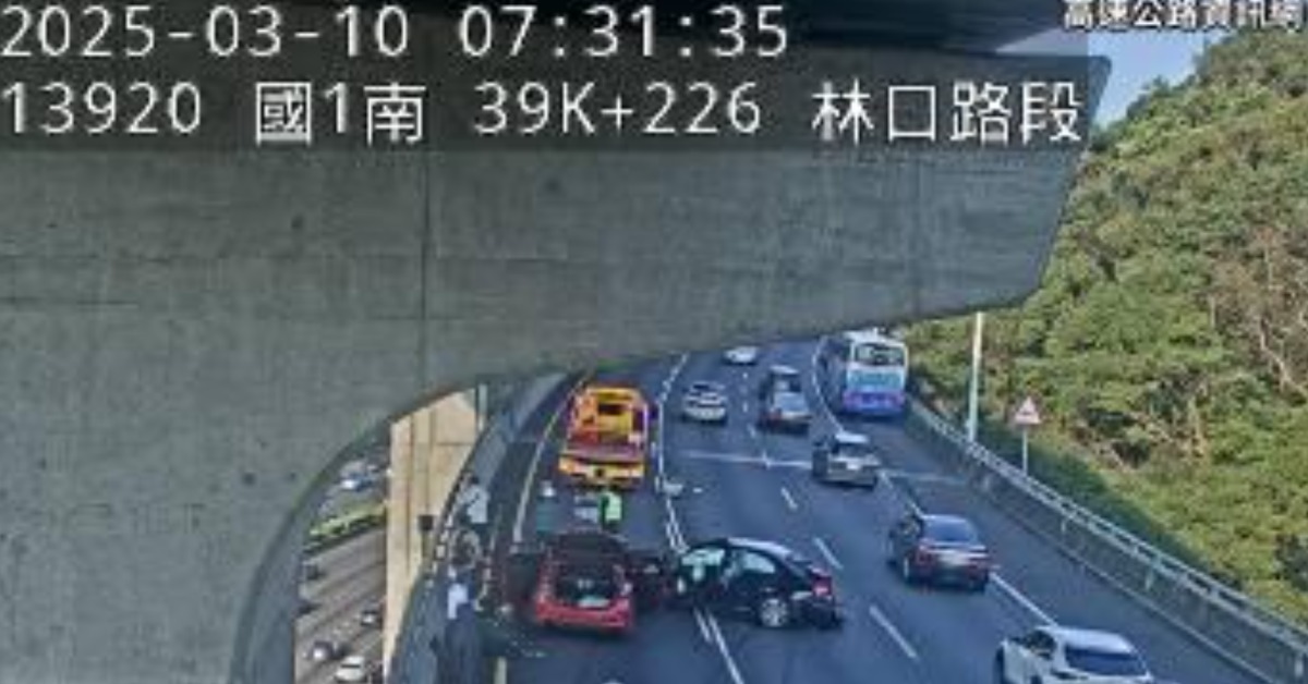 國道1號林口路段發生追撞車禍。(圖/翻攝自國道即時影像)