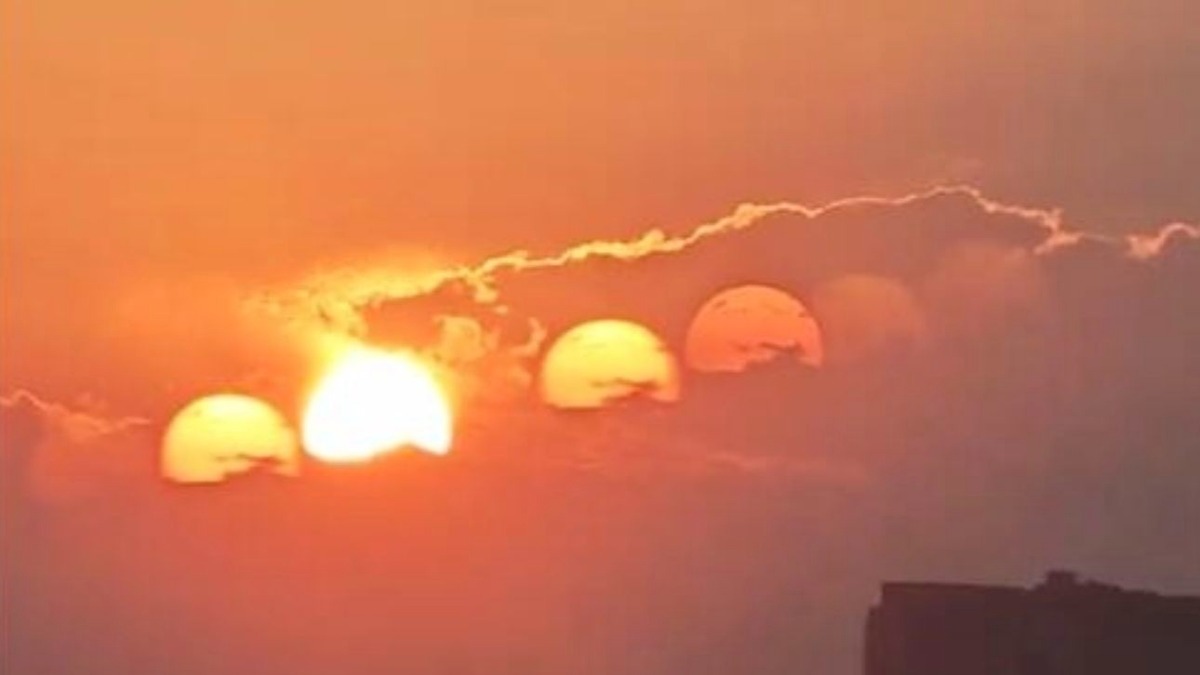 在大陸四川,天空竟然一次出現七顆太陽?(圖/翻攝自微博)