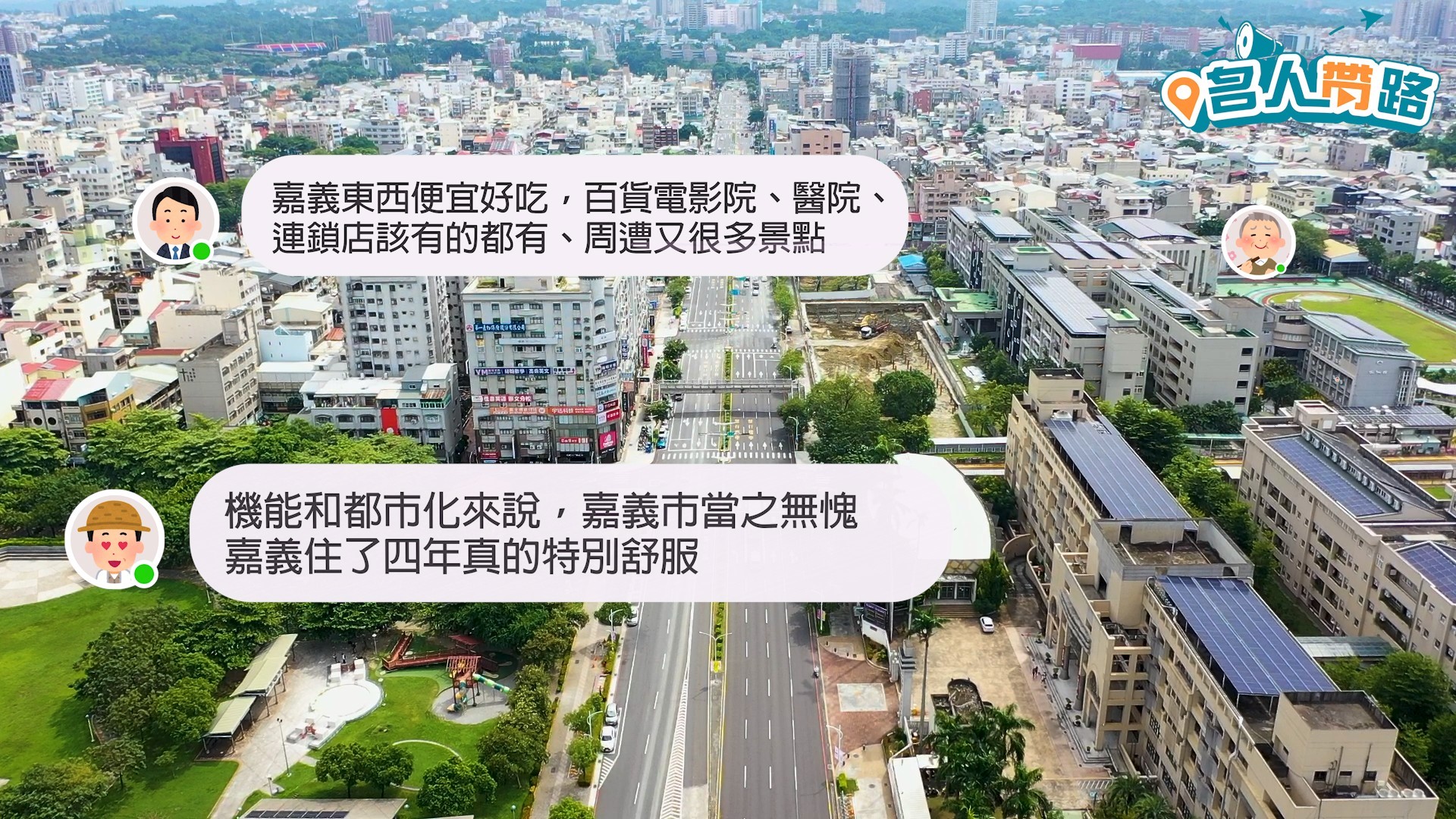 因為天氣好,電影院、醫院、大型連鎖店都有,生活機能佳,還有很多景點,而且全市公園綠地達35座,更是全台公園密度最高的城市。這樣兼具城鄉特色的城市,讓人有種「舒服到離不開」的幸福滋味。網友表示「機能和都市化來說,嘉義市當之無愧」、「東西好吃,步調悠閒、天氣好」。嘉義在地人張先生更直言:「嘉義生活機能非常好,尤其在嘉義蛋黃區組成家庭,希望以後的子女可以延續嘉義的幸福滋味。」
