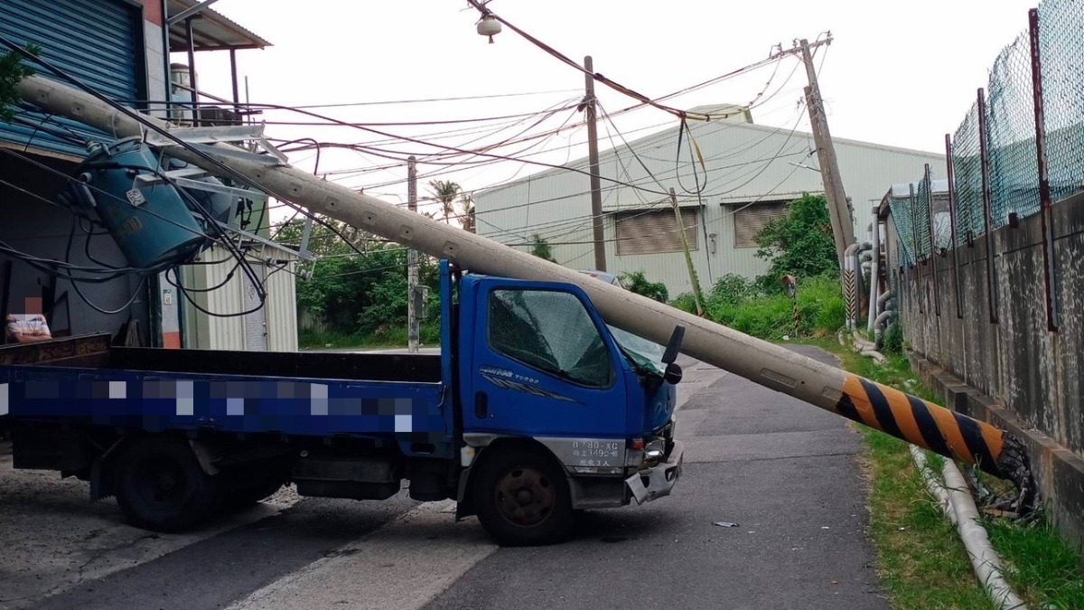 高雄一輛小貨車撞斷電桿,造成該地區部分地區停電。(圖/東森新聞)
