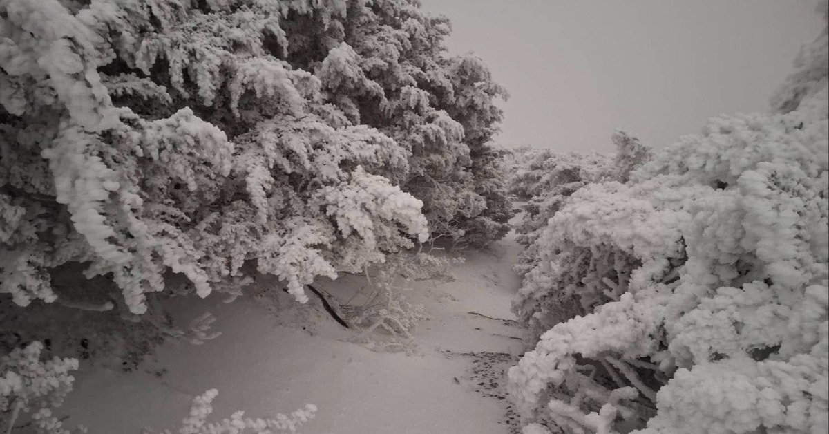 天氣寒冷,玉山1/10晚間下雪了。(圖/氣象署)