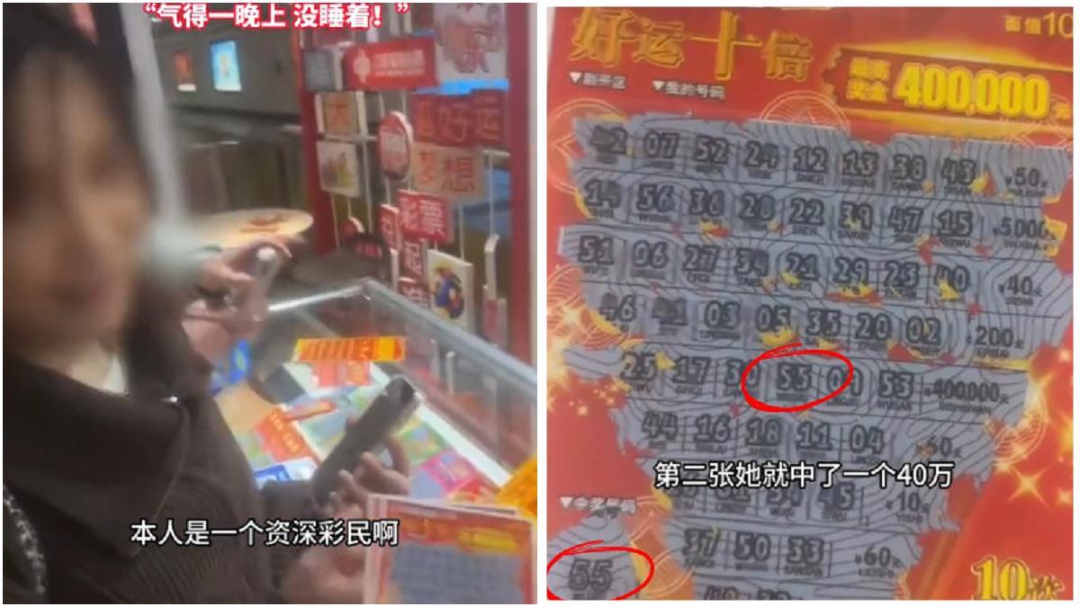 男子正在刮的時後,一名女子進入彩券行,詢問老闆男子刮的刮刮樂有沒有零賣,後來男子賣給女子2張刮刮樂,男子說:「她從我這抽了2張,抽了之後,第2張她就中了一個40萬人民幣(約179萬新台幣),真的中了,當時氣得我一晚上都沒睡著」。