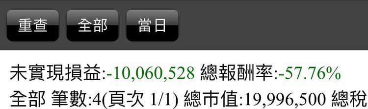 民眾在臉書社團「當沖勒戒所」分享對帳單,顯示入手某檔股票總報酬率-57.76%,總市值將近2000萬元,未實現損益達1000萬元,等同原PO當初斥資3千萬投資台塑股票,如今帳面上虧損高達1千多萬,據說投資標的就是台塑,背後還有一段悲慘故事。