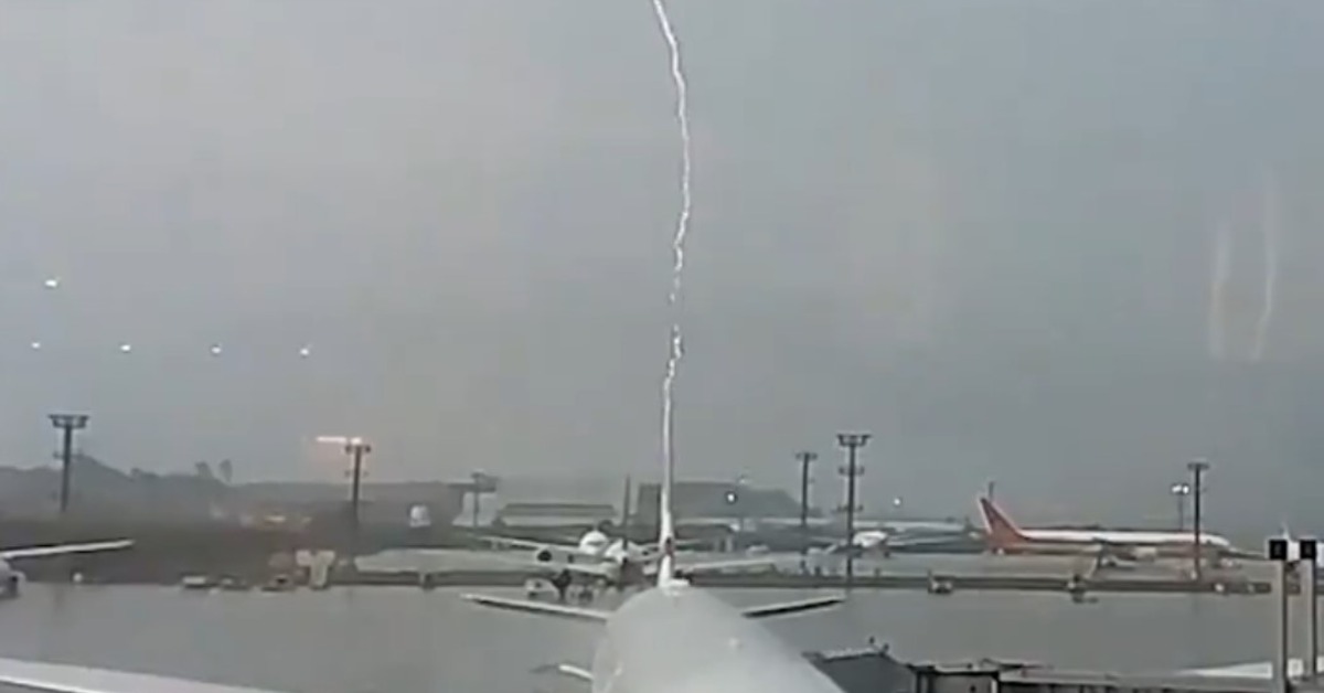 Lightning was recorded striking a British Airways plane preparing to take off from Sao Paulo, Brazil, to London's Heathrow Airport. ⚡ pic.twitter.com/ksCZIo8jGU