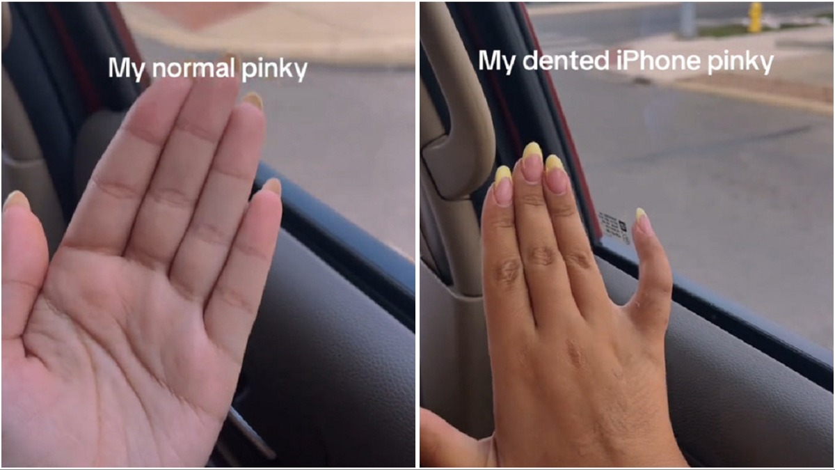 長期使用手機,女驚見變形「手機小指」。(圖/翻攝 girlboss4lyfe的抖音)