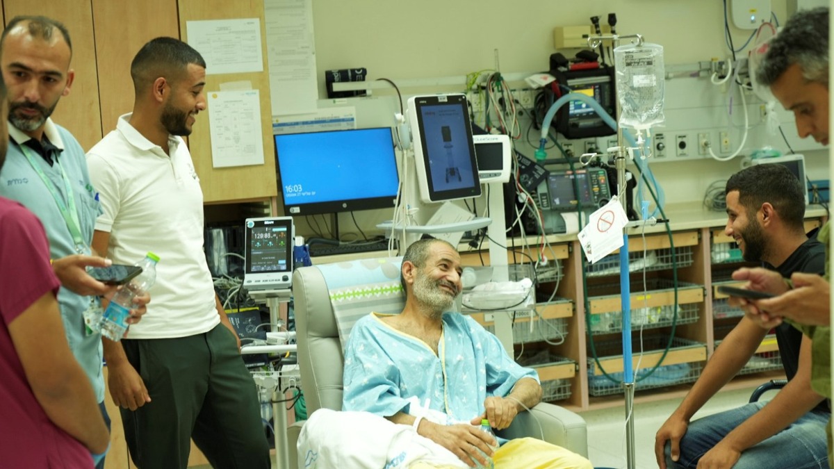 聽到總理納坦雅胡親自打電話來慰問,最新獲救的以色列人質阿爾卡迪開心地和納坦雅胡對話。
