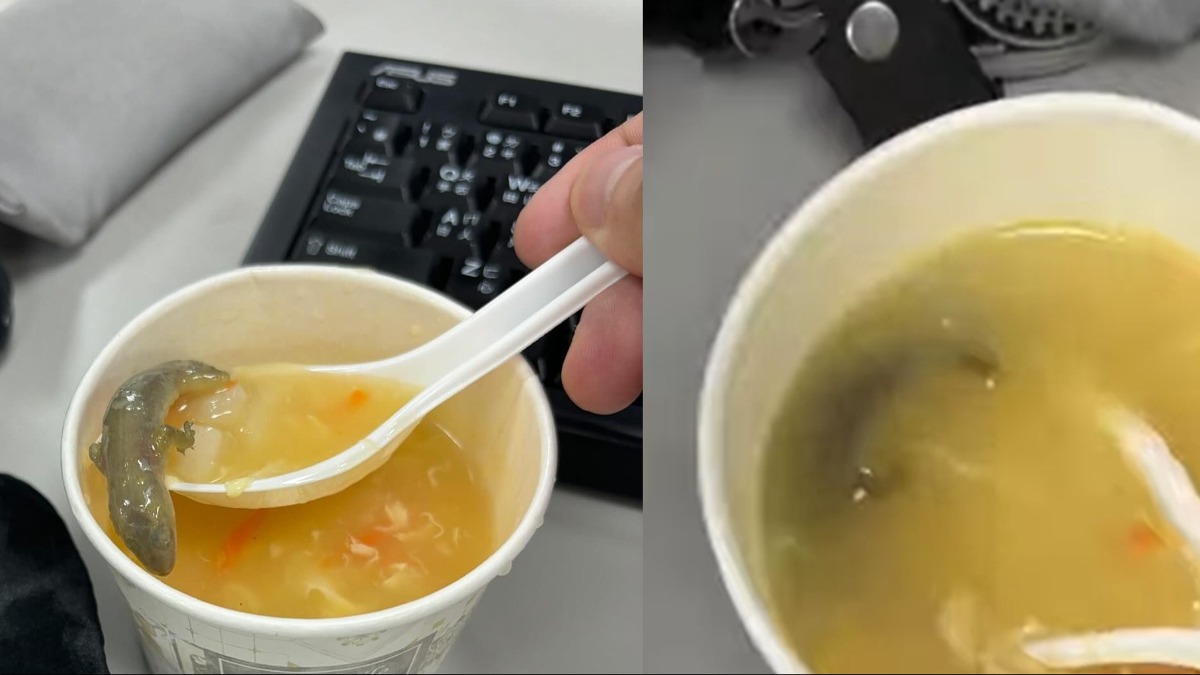 網友在社群平台Threads上表示,自己中午買了小籠湯包及一碗玉米濃湯,沒想到,湯喝到一半竟發現「一整隻壁虎」,畫面相當噁心,讓她瞬間吃不下飯,直呼「真的很噁,今天晚上做夢應該挺精彩的。」貼文發出後,也釣出一片網友回應「嘔!這也太噁心了吧。」