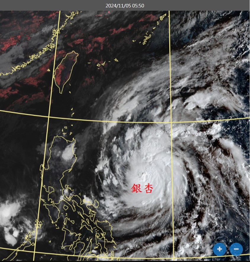 鄭明典在臉書表示,銀杏颱風近中心雲系旋轉特徵明顯,前進方向會遭遇冷高壓,而冷高壓移動速度不慢,兩者之間的互動還有一些變數,氣象署認為颱風最可能先往西北,然後轉向西,通過巴士海峽。