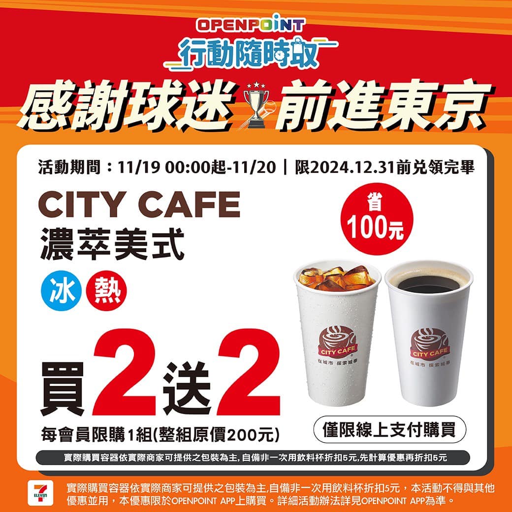 7-ELEVEN感謝球迷熱情應援,推出3大活動,除了OPENPOINT會員最高回饋16%,11月19日至20日全店指定商品滿120元加贈20點OPENPOINT,每個會員上限200點,總上限2000萬點。