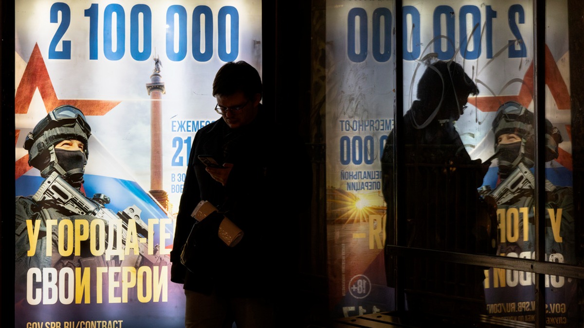 烏俄戰爭持續超過千日,俄政府的廣告看版呼籲加入部隊。(圖/美聯社)