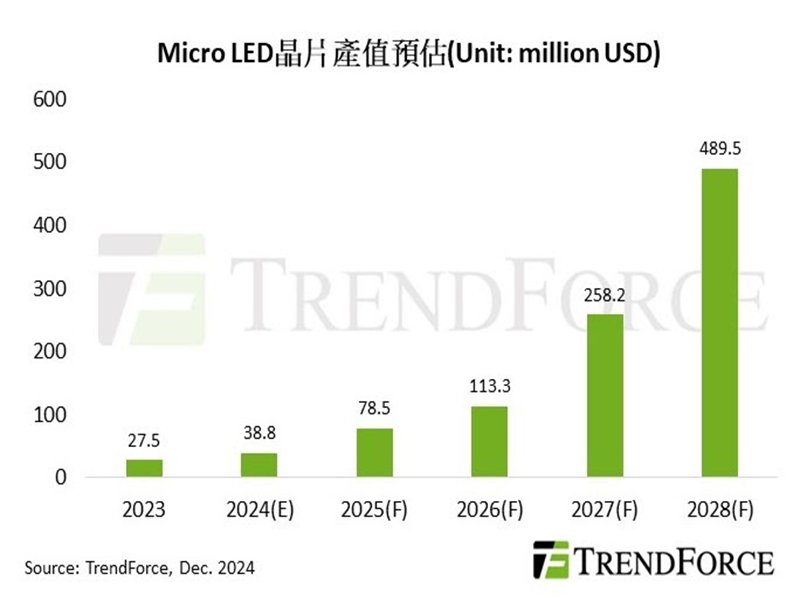 TrendForce: 聚焦AR與車用需求 2028年Micro LED晶片產值將達4.89億美元。(TrendForce提供)