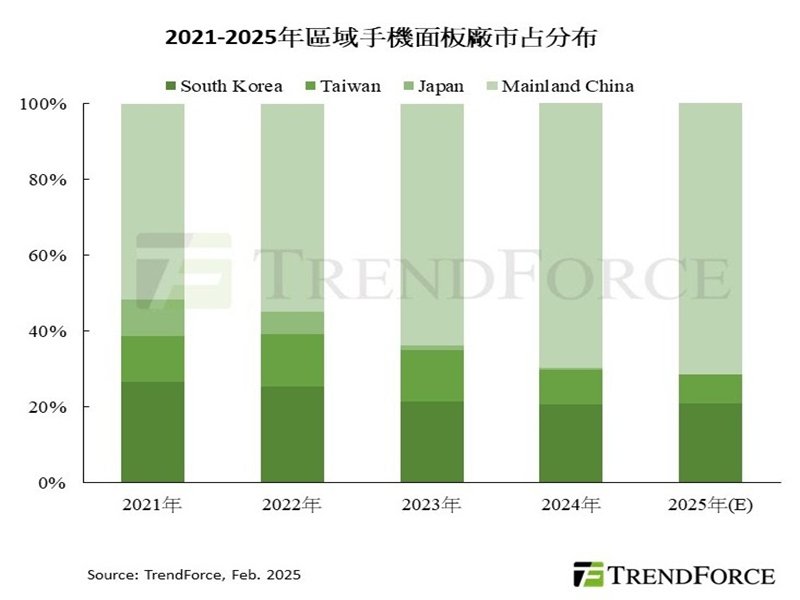 TrendForce:2024年全球手機面板出貨量年增11.4% 陸系廠商占比成長至近70%。(TrendForce提供)