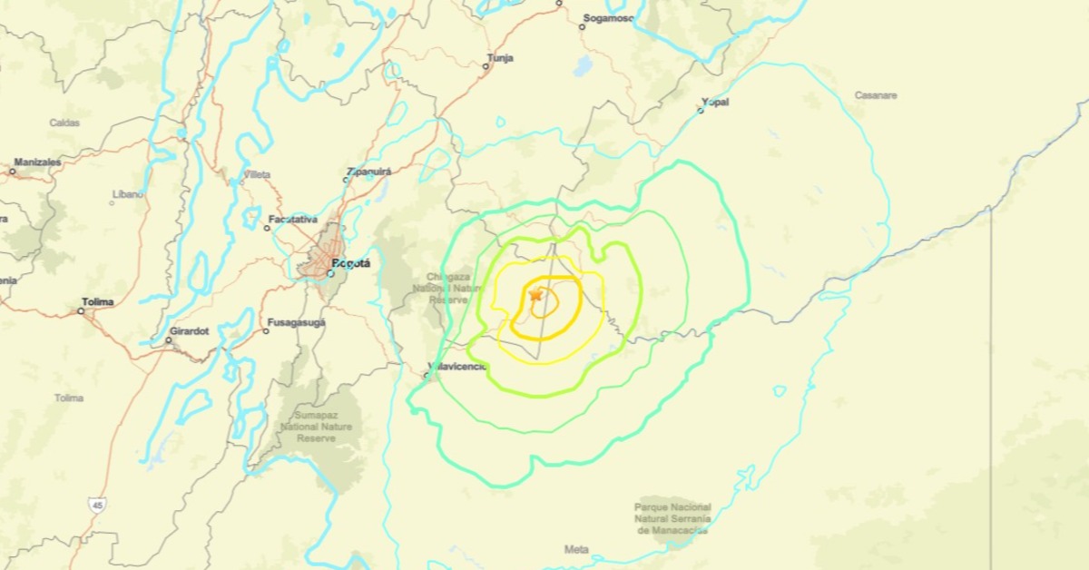 根據美國地質調查局(USGS)指出,哥倫比亞於6月8日13時(UTC)發生震矩規模(Mw)6.3地震。(圖/USGS)