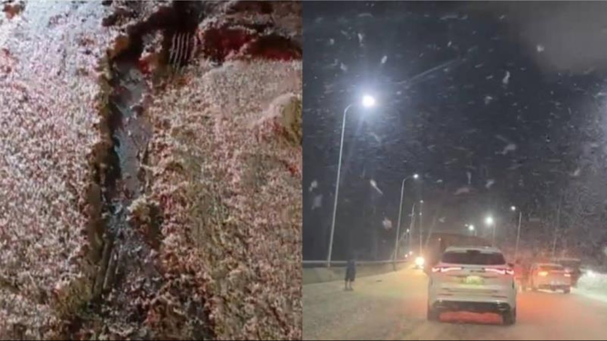 據陸媒報導,9月1日晚間8時30分許,沅水大橋上驚現大量蜉蝣,飛蟲像是下雪一樣不斷在空中飛舞,不斷堆積在大橋上,最厚處更達5公分,除導致橋上交通打結,車輛還因此打滑,發生相撞。