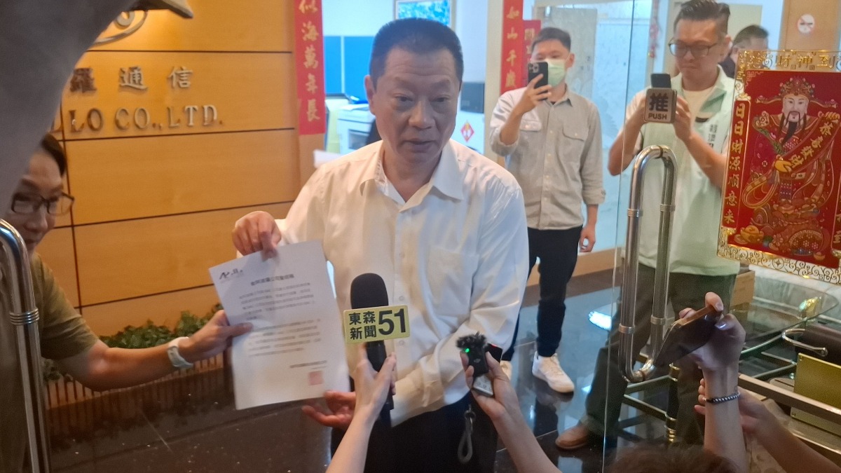 台灣金阿波羅公司董事長許清光現身說法,他強調有授權一間廠商貼牌銷售呼叫器,並澄清非台灣金阿波羅的產品,但記者追問BAC廠商細節,董事長調頭離開。(圖/記者李俊賢攝)
