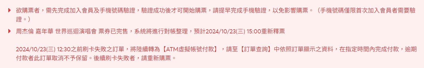 2024年10 月23日(三)中午12:00開賣,預計同日15:00重新釋票