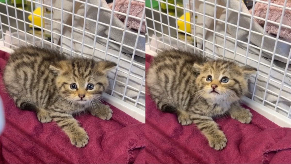位於德國的貝格海姆(Tierheim Bergheim)動物收容所在臉書上傳一段影片,內容是他們近期接收到的一隻可愛小貓。這隻小野貓原先是由一位善心人士在路邊發現,起初將牠當作流浪小貓帶回家照顧,但這名善心人士卻在回家後,發現小貓拒絕進食且性情暴躁,甚至發出威脅的嘶嘶聲後,便決定將牠帶到附近的貝格海姆動物收容所。