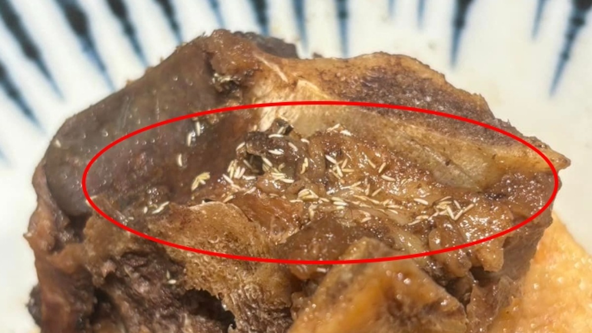 有民眾抱怨,她買了知名羊肉店的肉塊,卻發現上面有蛆。(圖/翻攝自臉書@爆料公社官方專屬)