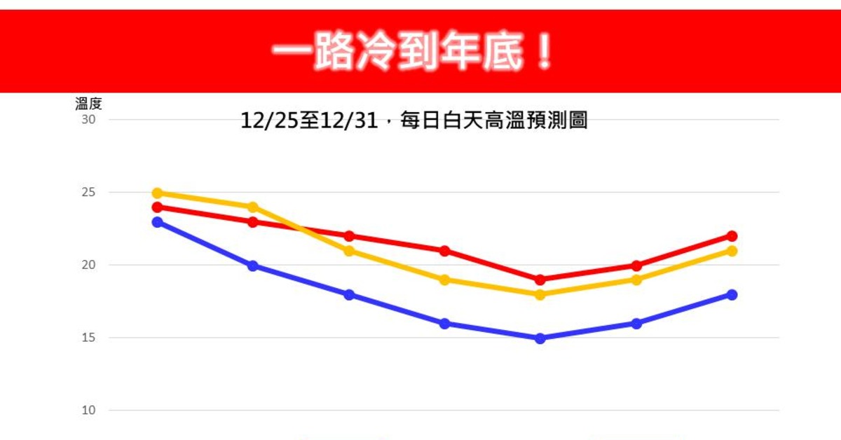 今(25日)是一年一度的聖誕節,也是本週天氣最好的日子,各地白天氣溫回升,感受較為溫暖,不過,好天氣僅維持一日,明(26日)起東北季風再增強,預計一路冷到年底。