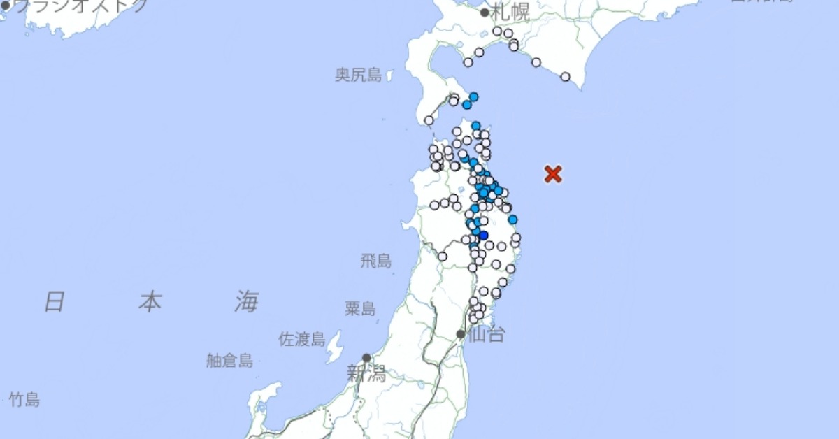 根據日本氣象廳資料,日本今(26日)台灣時間15時37分發生規模4.7地震,震央位於青森縣東海岸,地震深度40公里的淺層地震。