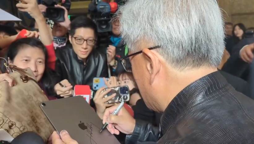 黃仁勳幫粉絲拍照簽名,並簡單說名,自己要去感謝廠商,準備上車去餐廳,預計將會前往「磚窯古早味懷舊餐廳」。