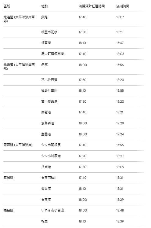 🟡 海嘯注意報地區(預估高度:1 公尺)